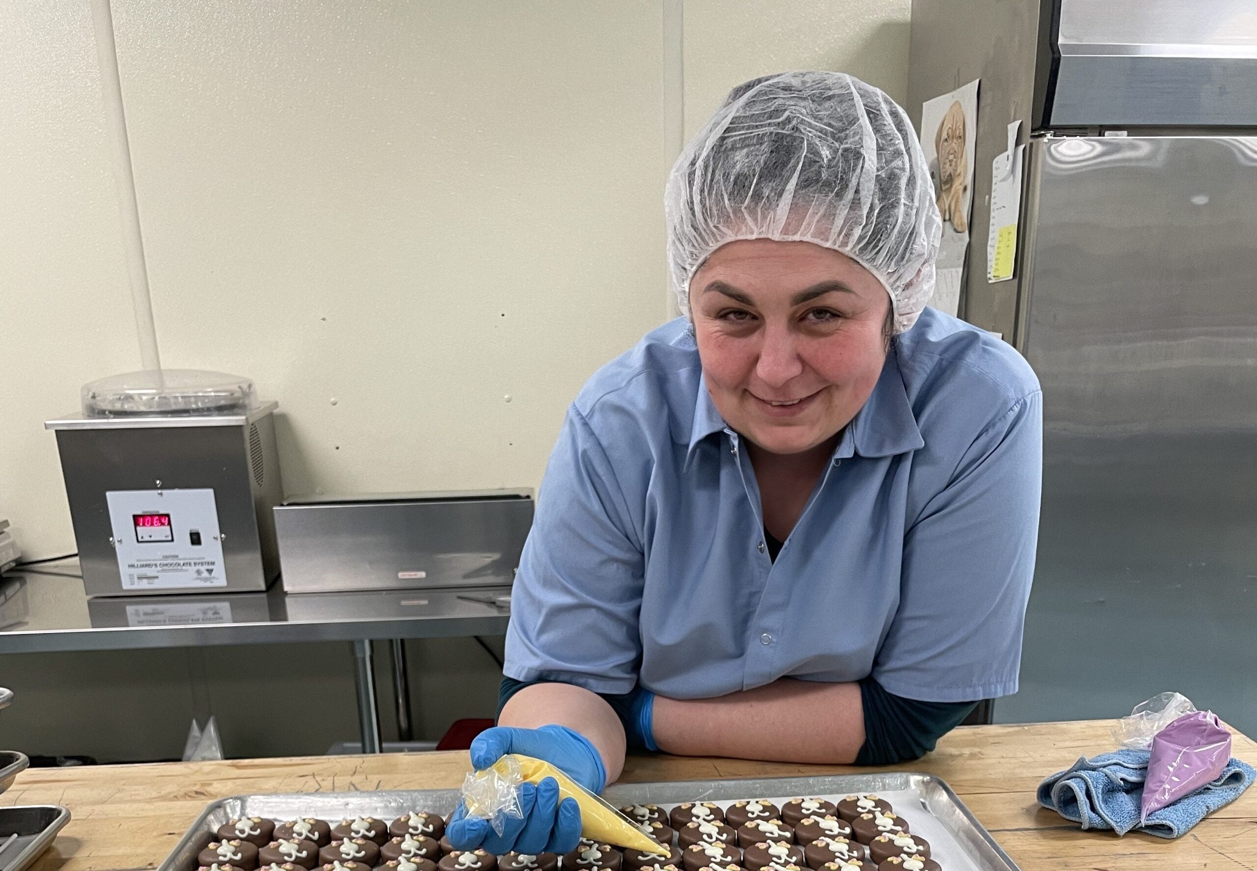 Our gifts, cookies and seasonal specialties are carried over to a special area for hand dipping and decorating.